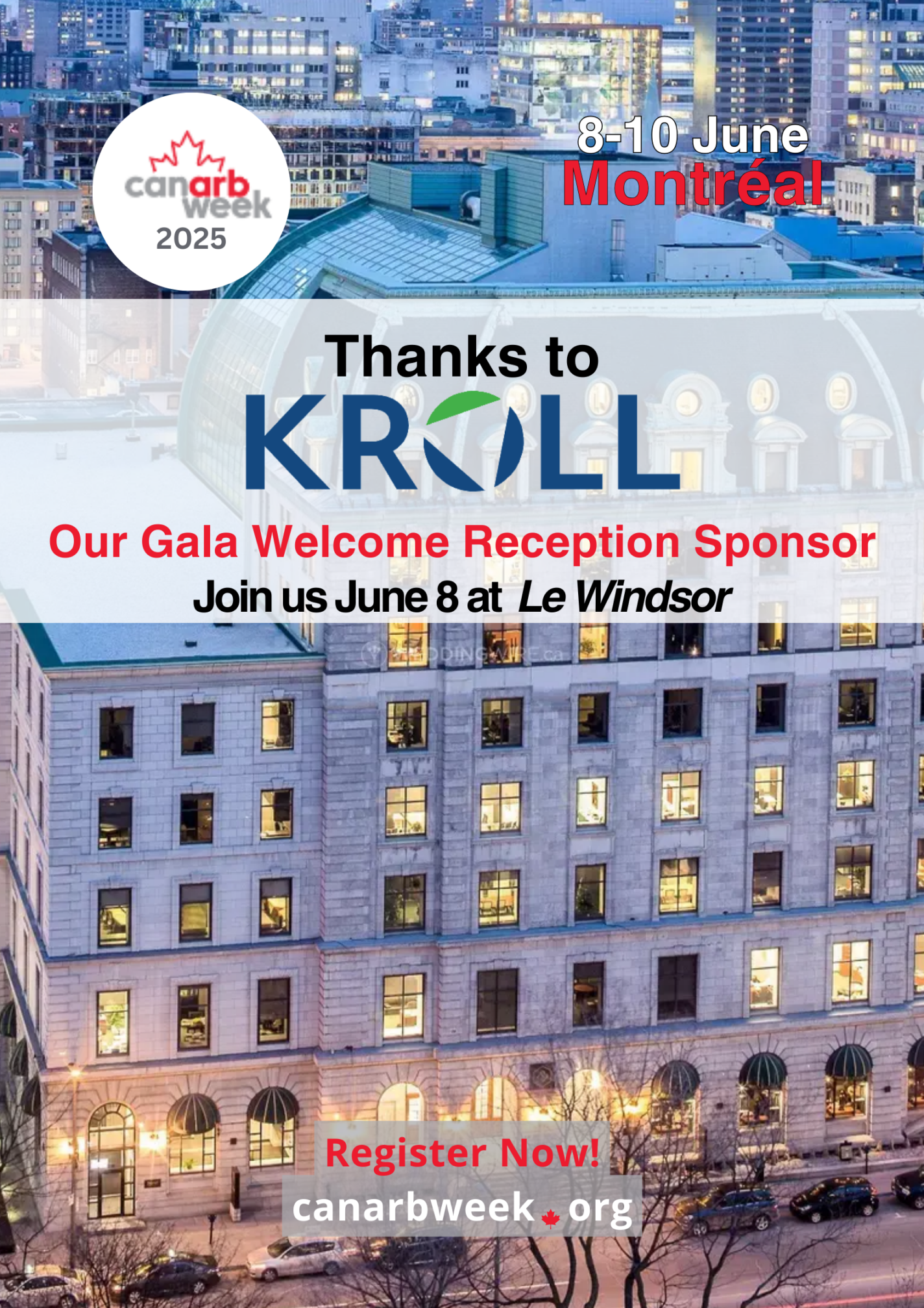 CanArb Week is made possible by the generosity of our sponsors. Thanks to Kroll, for sponsoring our Gala Welcome Reception! Get your tickets now and join us on Sunday, June 8 for our reception at Le Windsor. https://lnkd.in/eXadg6E.
