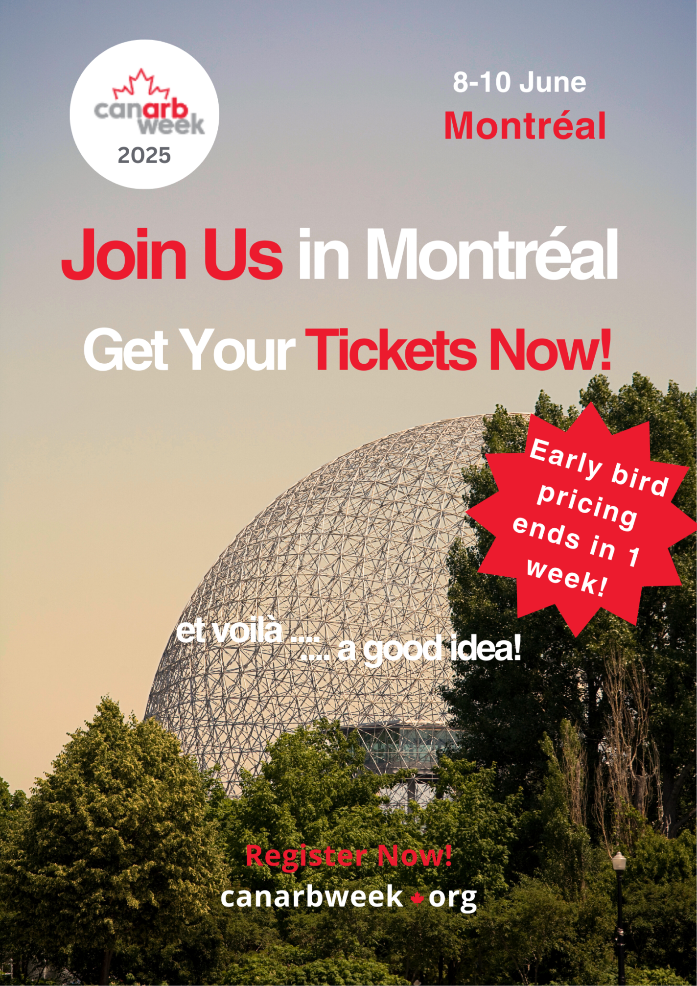 Last week to grab your Early Bird tickets for CanArbWeek. Secure your spot by April 15 for big savings!https://www.eventbrite.ca/e/canarbweek-2025-tickets-1250714052399?aff=oddtdtcreator
